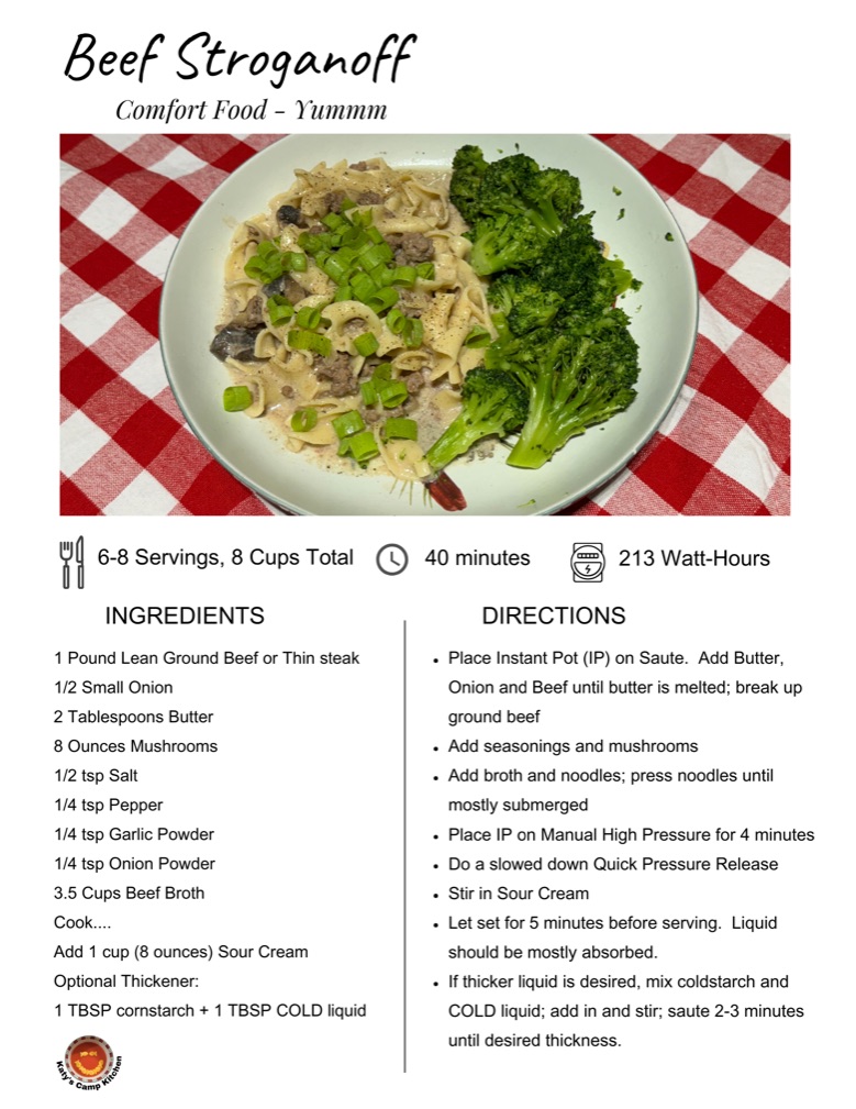 September 30, 2024 Katy's Camp Kitchen Instant Pot Beef Stroganoff Share this: Click to share on X (Opens in new window) X Click to share on Facebook (Opens in new window) Facebook Like Loading... Related